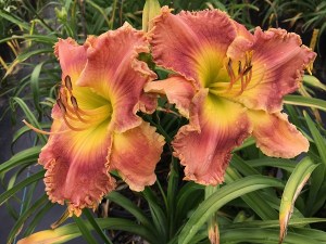 “PAINTED CANVAS” $30 || (Fow 9-25) Fowler-B TET. 7” bloom 32” scape SEV R 3 way branching 20 bud count. Shades of coral darkens as it moves into the chartreuse throat. Fine teeth surround the slightly ruffled edge ending w/thread of yellow. (Tavares Special Effect x Seedling)